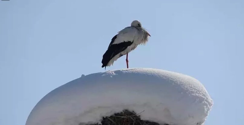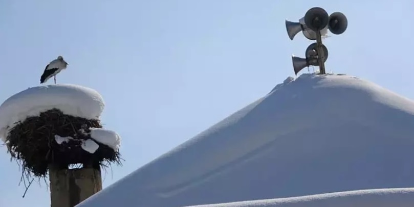 Bu kış da 4 leylek Köprücük köyüne yaklaşık 6 kilometre mesafedeki Akalan köyüne yuva kurdu. Köylüler, bir evin bacasına yuva yapan leyleklere yiyecek verip alışmaya çalışıyor.