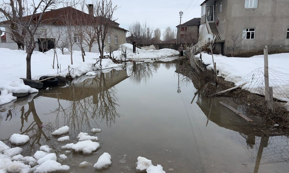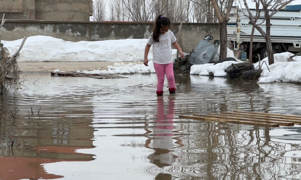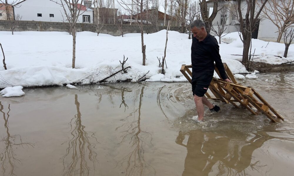 Yüksekova’da biriken kar eriyince evlerin bahçeleri su ile doldu