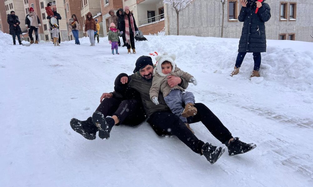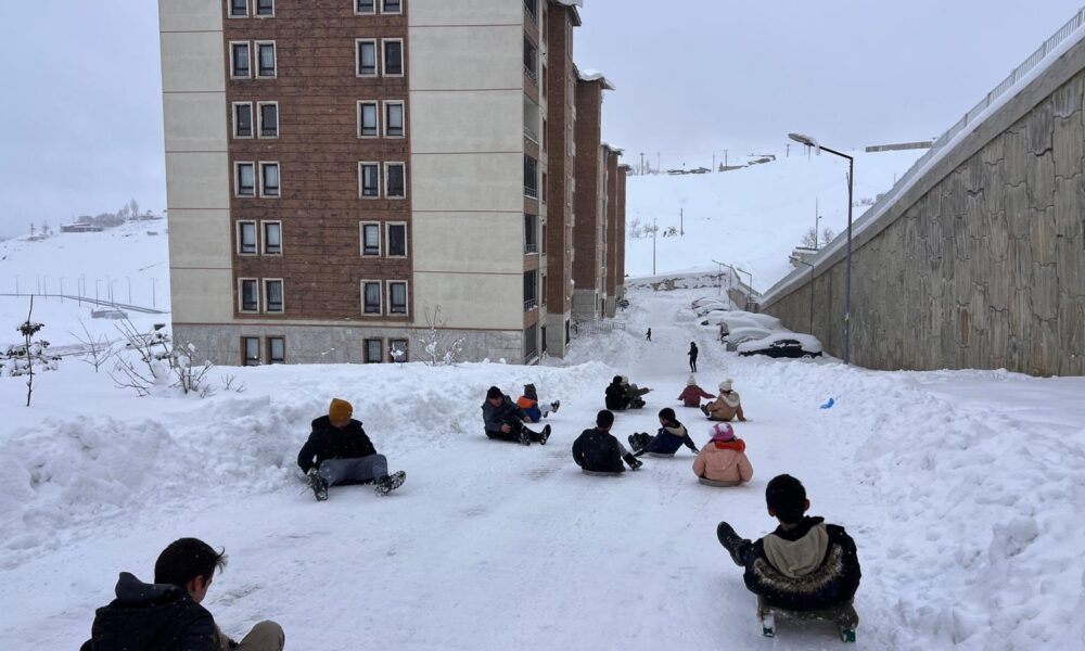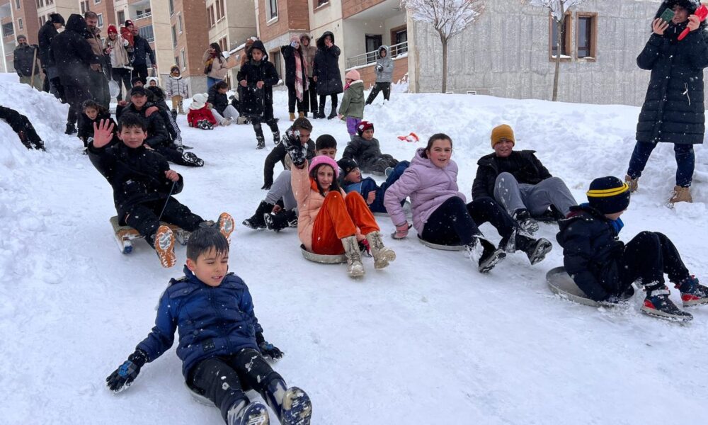 Yüksekovada etkili olan yoğun kar yağışının çocuklar için eğlenceye dönüştüğü görüldü. Dün mahallelerinde tepsi, naylon ve kızaklarla kayan çocuklar, eğlenceli anları kameralara yansıdı. Esentepe Mahallesi’ndeki Pizok TOKİ konutlarında bir araya gelen çocuklar, karla kaplanan yokuşları kayak pistine çevirdi. Tepsiyle kayan Zelal Jinda, “Birçok arkadaşımız evlerinde getirdikleri tepsi, kızak, naylonla yokuştan aşağıya doğru kayıyor. Hep birlikte eğlenip mutlu oluyoruz” dedi.
