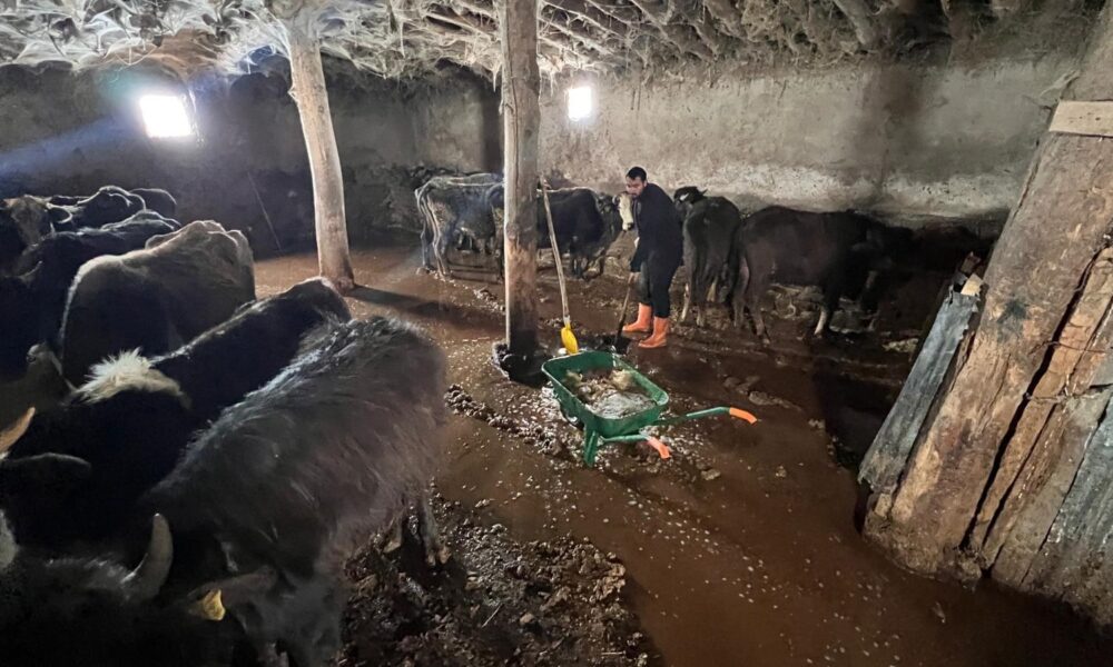 Yüksekova’da sağanak; ahırları su bastı