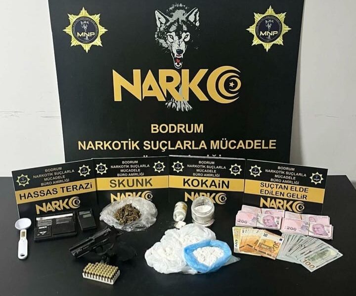 Muğla İl Emniyet Müdürlüğü’ne bağlı narkotik ve istihbarat ekipleri 19 Temmuz’da Yunanistan’ın Kos Adası’ndan Bodrum’a uyuşturucu getirildiği bilgisini aldı. Bodrum Cumhuriyet Başsavcılığı’nın talimatıyla harekete geçen ekipler şüphelilerin bulunduğu adrese eş zamanlı baskın yaptı. Adreslerde yapılan aramalarda 659 gram kokain, 15 gram skunk, 23 karton sigara, 4 hassas terazi, suçtan elde edildiği değerlendirilen 40 bin TL nakit para, 3 bin 100 dolar, 1750 avro ele geçirildi. Operasyonlarda 9 şüpheli gözaltına alındı.