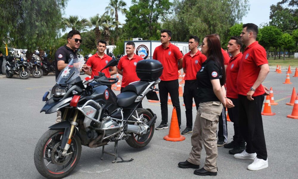 Ege Bölgesi'nde Motosikletli Polis Timleri Büro Amirliği'nde (Yunuslar) görev yapmak isteyen kursiyerler İzmir'de zorlu bir eğitime tabi tutuluyor.Fotoğraf:Tolga TAHÇI/İzmir,(DHA)