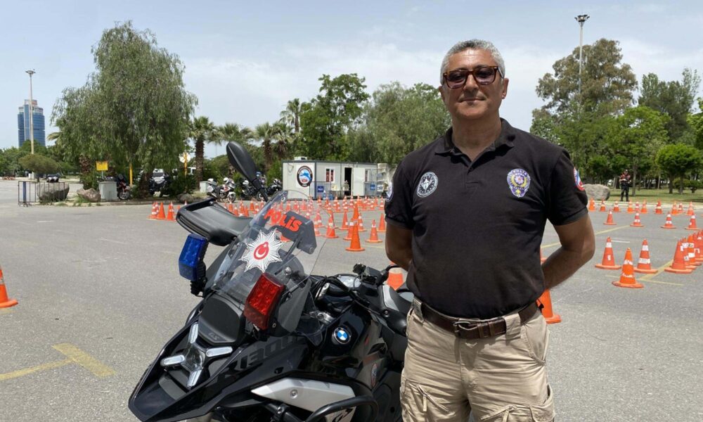 Ege Bölgesi'nde Motosikletli Polis Timleri Büro Amirliği'nde (Yunuslar) görev yapmak isteyen kursiyerler İzmir'de zorlu bir eğitime tabi tutuluyor.İbrahim Gençer (Fotoğrafta).Fotoğraf:Tolga TAHÇI/İzmir,(DHA)