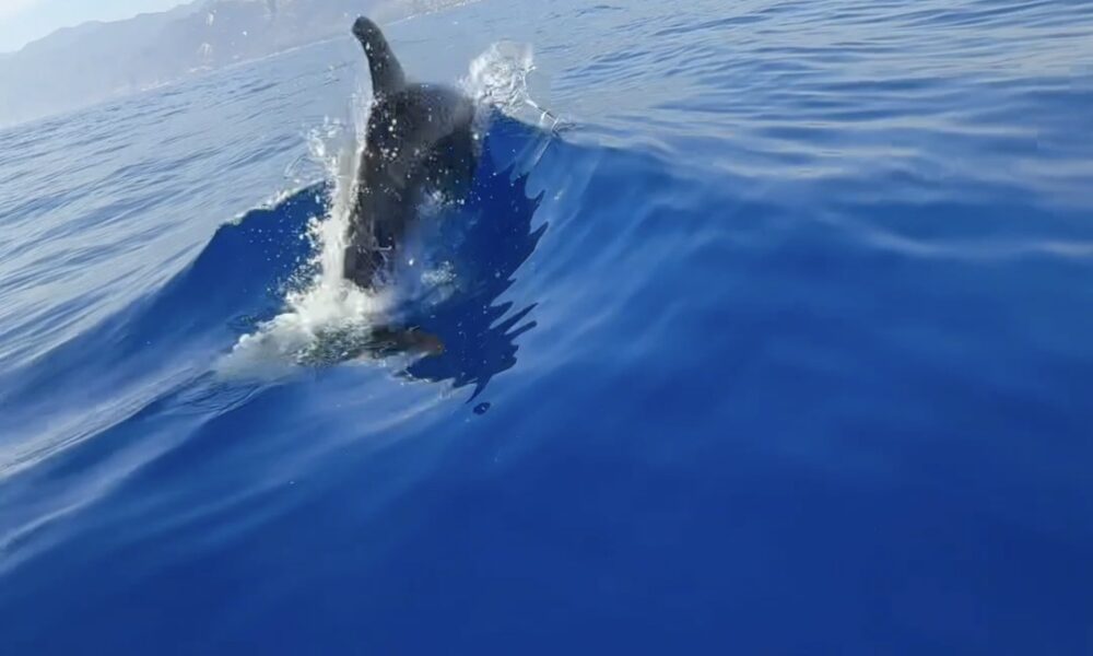 Yunuslar balıkçı teknesine eşlik ederken görüntülendi