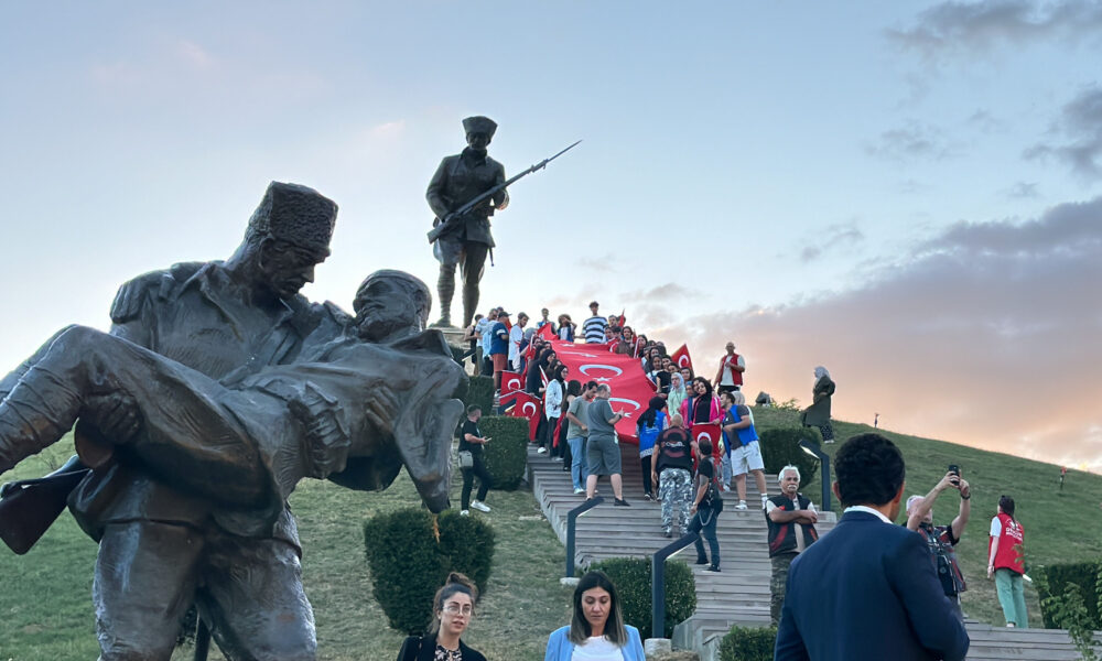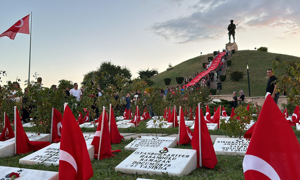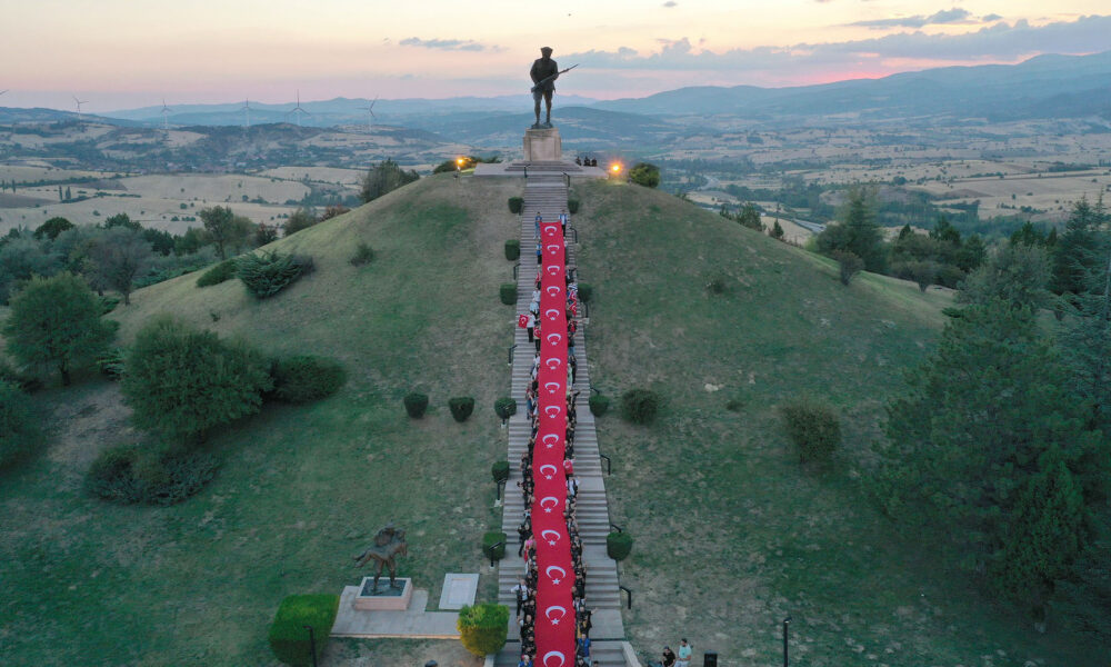 Zaferin yıl dönümünde Dumlupınar Şehitliği’nde 50 metrelik Türk bayrağı açıldı
