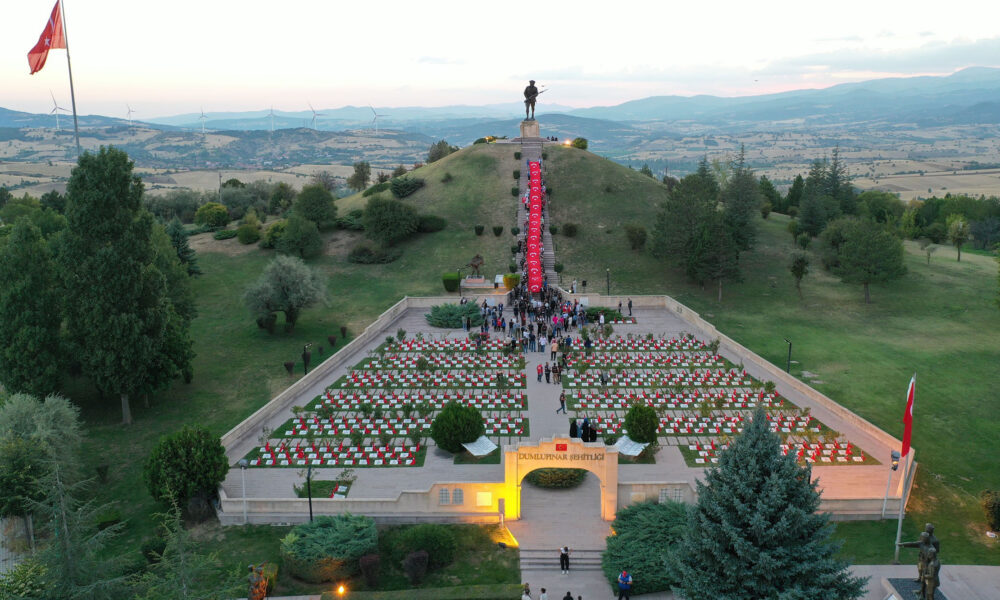 Gençlik ve Spor Bakanlığı, 30 Ağustos Zafer Bayramı dolayısıyla Kütahyanın Dumlupınar ilçesindeki şehitlikte anma programı düzenledi. Ulu Önder Gazi Mustafa Kemal Atatürk önderliğindeki Türk ordusunun, Afyon Kocatepeden başlatıp, Dumlupınarda kesin zafere ulaştırdığı Büyük Taarruz dolayısıyla şehitlik, Türk bayraklarıyla donatıldı. Gençlik ve Spor Bakanlığı Gençlik Hizmetleri Genel Müdürlüğü’nce 30 Ağustos Zafer Bayramı etkinlikleri kapsamında ilçede 100 gencin katıldığı ‘Zafer Kampı’ da düzenlendi. Kampa katılan gençler, etkinlikler kapsamında Dumlupınar Şehitliği’ni ziyaret ederken, Mehmetçik Anıtı’nda 50 metrelik Türk bayrağı açtı.