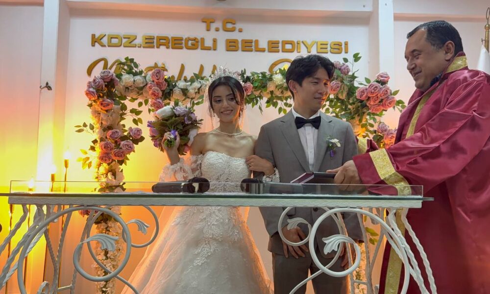 İlçeye bağlı Kırmacı Mahallesi’nde yaşayan İngiliz Dili ve Edebiyatı mezunu Tuana Nur Yıldız, Korece öğrenmek için internet üzerinden kullandığı bir uygulama sayesinde Güney Koreli Kyungsu Kang ile tanıştı. Yıldız ve Kang’ın arkadaşlıkları ilerledi ve evlenmeye karar verdiler. Genç çift, dün Ereğli ilçesinde bulunan Atatürk Kültür Merkezi Nikah Salonu’nda hayatlarını birleştirdi. Kyungsu Kang, nikah öncesi kameralara eşini çok sevdiğini söyledi. Tuana Nur Yıldız ise dil öğrenmek amacıyla tanıştıklarını, eşinin Türkiye’ye geliş amacının kendisi olduğunu ifade etti. Nikah töreninde davetliler çifti alkışlarla tebrik etti.