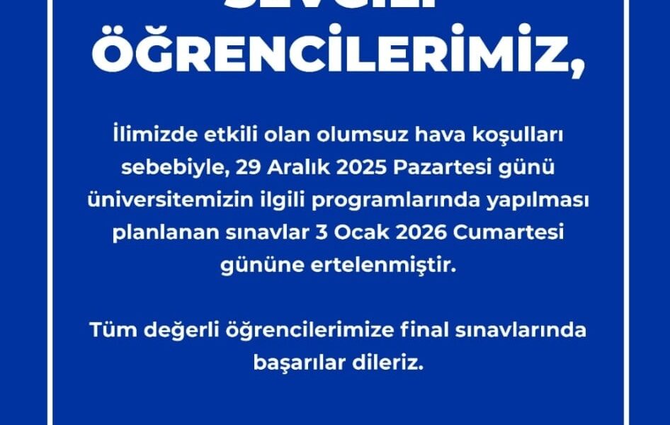 Öte yandan BEUN Rektörlüğü de yaptığı yazılı açıklamayla 29 Aralık Pazartesi günü yapılacak final sınavlarının 3 Ocak Cumartesi gününe ertelendiğini duyurdu.