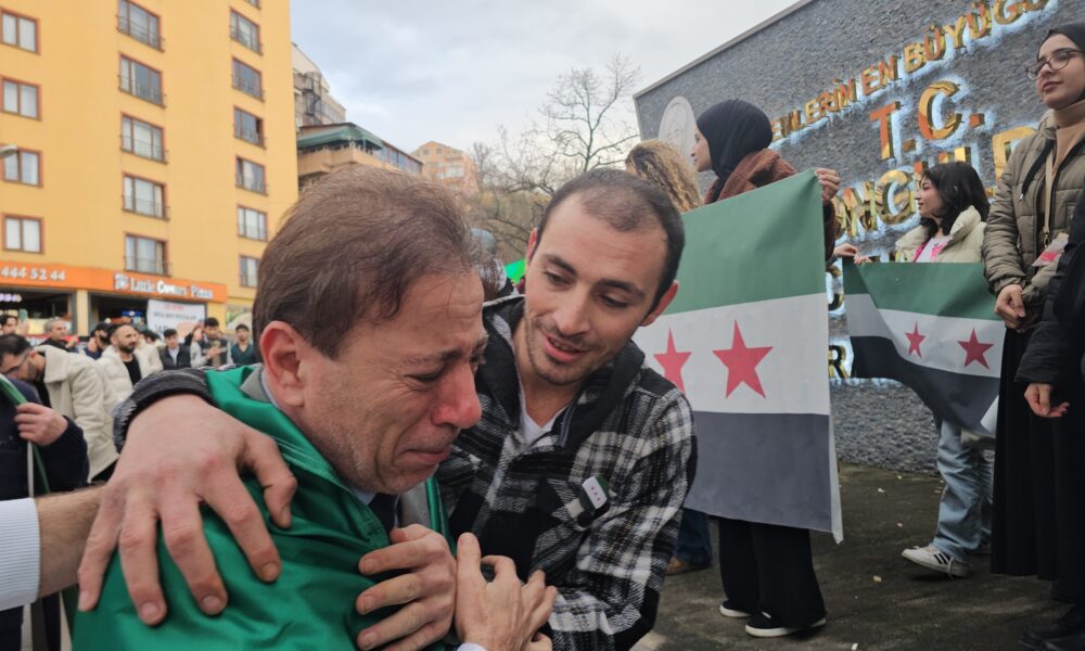 BEUN İlahiyat Fakültesi’nde görev yapan ve iç savaş nedeniyle Türkiye’ye gelen Suriyeli Prof. Dr. İzzet Seyidahmet de kutlamaları görünce, boynuna Yeni Suriye Bayrağı asarak gözyaşlarıyla kalabalığa yaklaştı. Öğrencilerin karşılayıp sarıldığı ‘hocaları’ kutlama boyunca gözyaşı dökerek sevinç yaşadı. Grup daha sonra olumsuzluk yaşanmadan dağıldı.